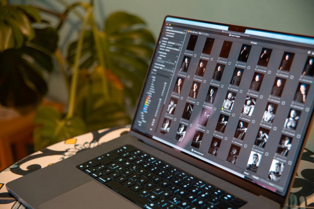 Sobald das Shooting abgeschlossen ist, beginnt unsere Arbeit erst richtig. Die Bilder werden gesichtet und vorsortiert. Anschließend erhältst du einen Link zur Bildauswahl — du entscheidest selbst, welche Aufnahmen professionell retouchiert werden sollen. Die Anzahl wurde bereits im Vorfeld gemeinsam festgelegt.